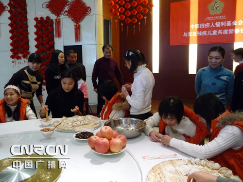 中廣網(wǎng)北京1月25日消息(記者王淑娟實(shí)習(xí)記者張雪)大紅的窗花貼起來,喜慶的燈籠掛起來。除夕的中國康復(fù)研究中心歡歌笑語,暖意融融。中國殘疾人福利基金會(huì)、首都各界愛心人士、醫(yī)務(wù)工作者和正在這里康復(fù)治療的汶川地震災(zāi)區(qū)的孩子們一起貼窗花、包餃子,度過了一個(gè)喜慶的團(tuán)圓年。
