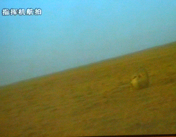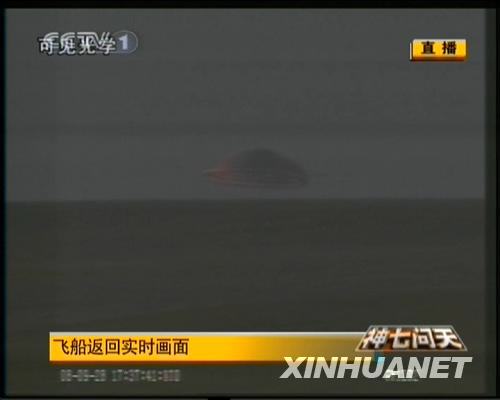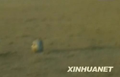 9月28日,神七返回艙成功著陸。新華社發(電視截圖)