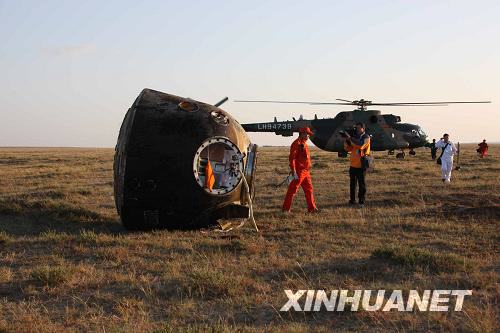 9月28日,神七返回艙成功著陸。新華社記者王建民攝