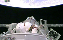 中廣網北京航天飛行控制中心9月27日快訊(記者曹囡囡 南光)地面人員向翟志剛發出口令:可以返回軌道艙。航天員準備返回軌道艙。