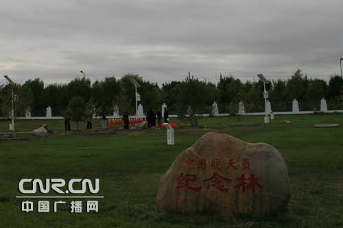 問天閣前莊嚴的五星紅旗后方一片不大的草坪上,赫然擺放著一塊刻有“中國航天員紀念林”幾個紅色大字的石頭,由楊利偉、費俊龍、聶海勝等親手栽種的紀念樹生機盎然。