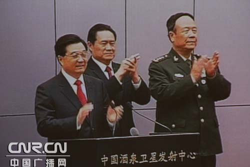 中華人民共和國國家主席中央軍委主席胡錦濤祝賀神舟七號載人航天工程圓滿成功(記者南光 曹囡囡 攝)