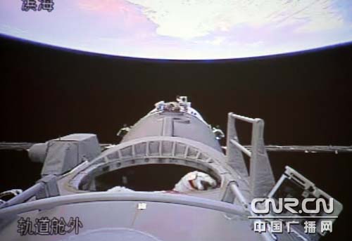 9月27日,航天員翟志剛正在出艙。(中廣網(wǎng)記者南光 曹囡囡攝)