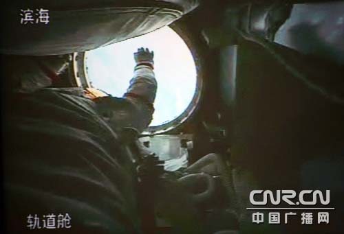 2008年9月27日16時39分,中國航天員翟志剛打開軌道艙門,即將出艙。(中廣網(wǎng)記者南光 曹囡囡攝)