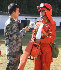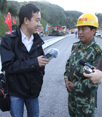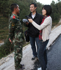 中央臺記者孫杰、王嫻采訪武警交通部隊戰士
