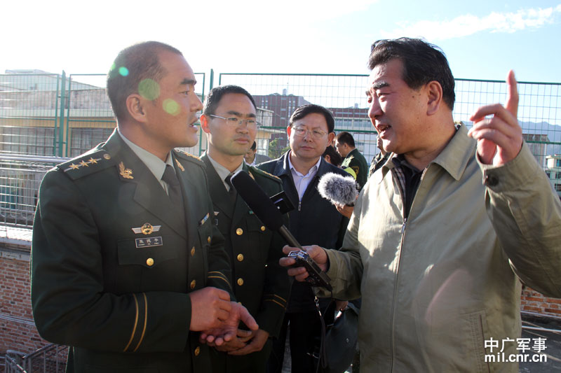 武警云南總隊保山市支隊騰沖縣中隊向采訪團介紹情況 中廣軍事記者劉鵬攝
