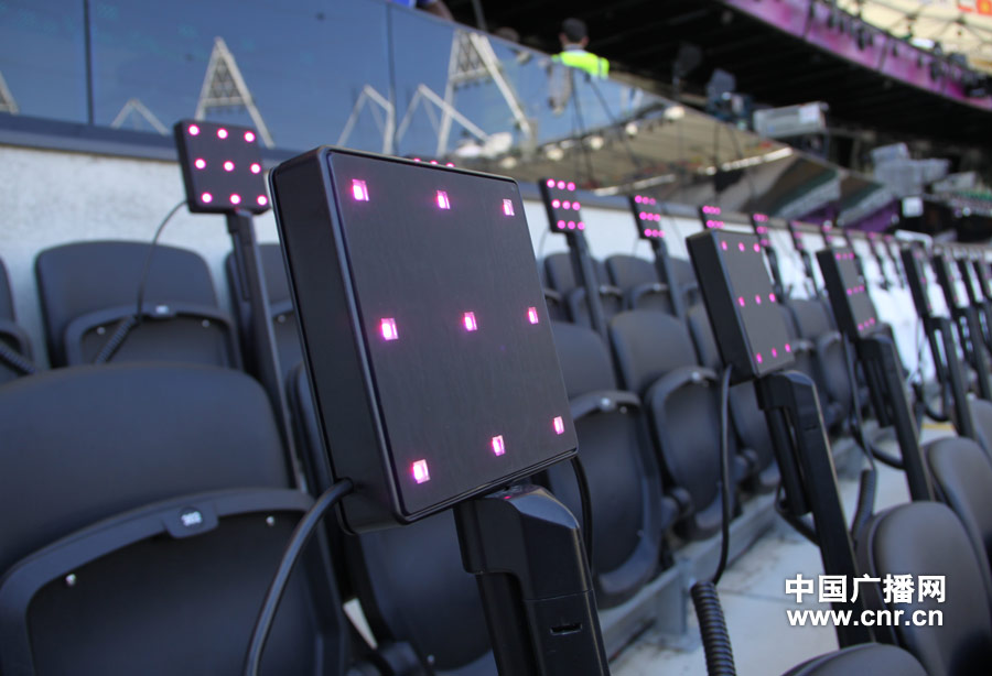 在這樣的大背景下,博伊爾自然做不到像張大導演那樣千人擊缶的壯麗詩篇,那他該怎么辦呢,像英國這樣的工業起家的國家,最重人力成本,既然沒錢,那么就讓科技代替人力,于是,當我探訪倫敦碗時,發現觀眾席每個座位都有一個類似平板電腦的背靠。