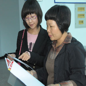 ▲鄭標菊(右)到農村檢查指導“廉潔村”創建工作。