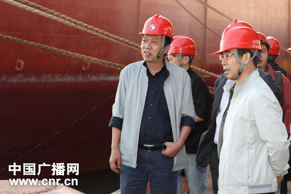 中央人民廣播電臺“喜迎十八大走基層轉(zhuǎn)作風改文風”《傾聽河北》采訪團成員、中國之聲總監(jiān)蔡小林在河北曹妃甸礦石碼頭采訪
