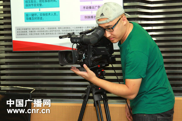 中廣網直播團隊成員王維在中央臺直播間錄制《中國大舞臺》節(jié)目