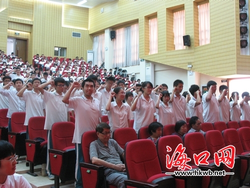 海口網6月20日消息(記者 謝舒)20日下午,海南華僑中學舉行紀念中國共產黨建黨91周年大會暨新黨員宣誓儀式。已獲海南僑中高三黨支部大會批準入黨的85名預備黨員莊嚴宣誓:我志愿加入中國共產黨,擁護黨的綱領,遵守黨的章程……。
