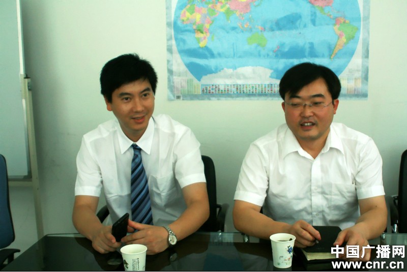 上圖:中國南車株機(jī)公司海外營銷團(tuán)隊(duì)成員:王攀(右)、李亮(左)向記者講述海外營銷經(jīng)歷。