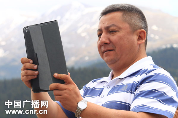 新疆民族語言廣播中心主任帕爾哈提·玉素甫在采訪現場
