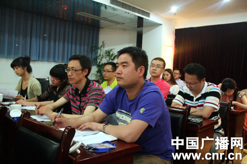 由中國廣播聯盟組織的“全國百家電臺攜手走轉改:我們在基層”赴四川“走基層、獻愛心”大型采訪活動5月8日在成都市啟動。圖中為各聯盟臺的記者正在認真聆聽本次采訪活動的主題。中廣網記者李沛 攝