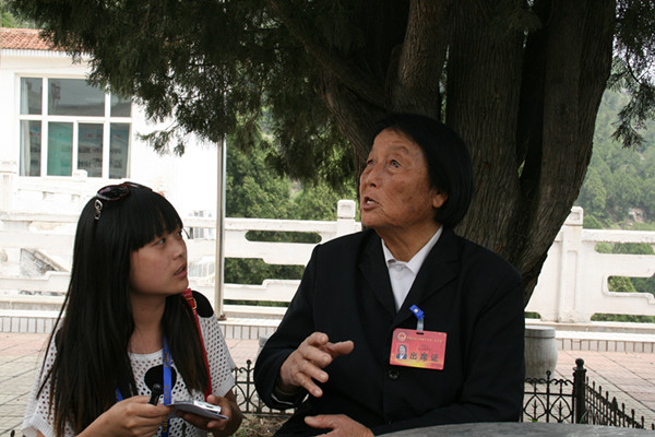 綿陽臺記者蒲雨(左一)采訪全國勞模申紀蘭
