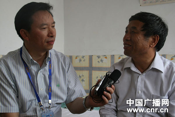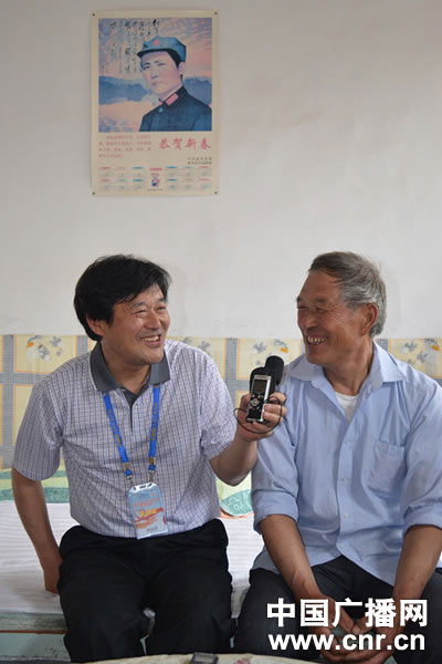 中央人民廣播電臺副總編輯李國君在農戶李克斌家采訪(中廣網記者董浩攝)