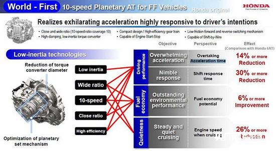 近日,據海外媒體消息,本田在2015本田科技日上首次發表了為前驅開發的10速自動變速箱。該款全新的變速箱具有更加省油、快速以及低油耗的特點,換擋反應提升了30%。