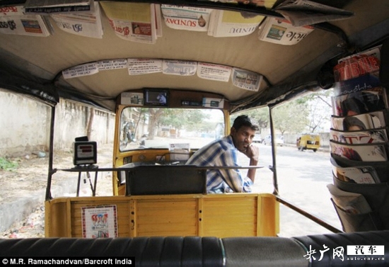 這位來自印度的名叫Annadurai的司機(jī)朋友便為他的嘟嘟車增添了不少科技玩意兒,不僅在后排為客人準(zhǔn)備了各式各樣的報紙雜志,更提供了免費(fèi)Wi-Fi服務(wù)、車用電視、平板電腦、各種款式的手機(jī)充電插頭等配備,為客人提供了相當(dāng)便利的乘車環(huán)境。