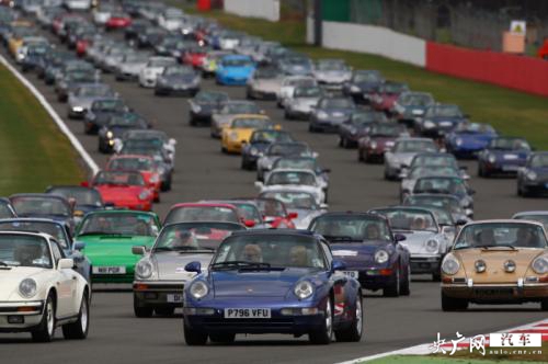為了慶祝50周年,保時捷911在銀石賽道舉行了一場別開生面的50周年慶典,1208輛911跑車齊聚一堂,在著名賽道上展開了“壓馬路”大游行。
