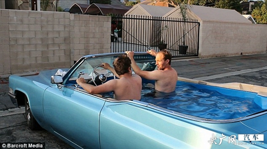 據英國《每日郵報》報道,來自美國洛杉磯的汽車愛好者菲爾韋克(Phil Weicker)和鄧肯福斯特( Duncan Forster)別出心裁,費時近6年,將一輛1969年的經典凱迪拉克汽車改造成移動熱水浴缸。他們計劃在8月份打破一項速度測試世界記錄。
