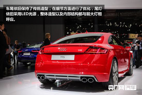 在本次開幕的2015上海車展,全新一代奧迪TTS進行了國內首次亮相。奧迪TTS是奧迪TT的性能版車型,體現了奧迪全新家族式設計語言,此次推出的新車在科技配置以及動力系統方面做了不小的提升。