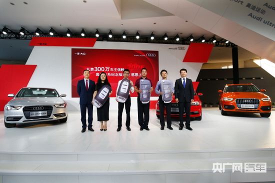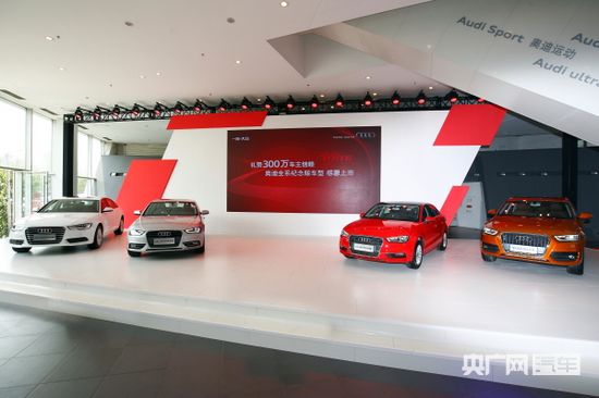2015年5月21日,一汽-大眾奧迪正式宣布:奧迪品牌在華累計(jì)銷量突破300萬輛。為答謝用戶而打造的四款“300萬紀(jì)念版”車型——奧迪A6L 300萬紀(jì)念版、奧迪A4L 300萬紀(jì)念版、奧迪A3 300萬紀(jì)念版和奧迪Q3 300萬紀(jì)念版,即日起正式上市。