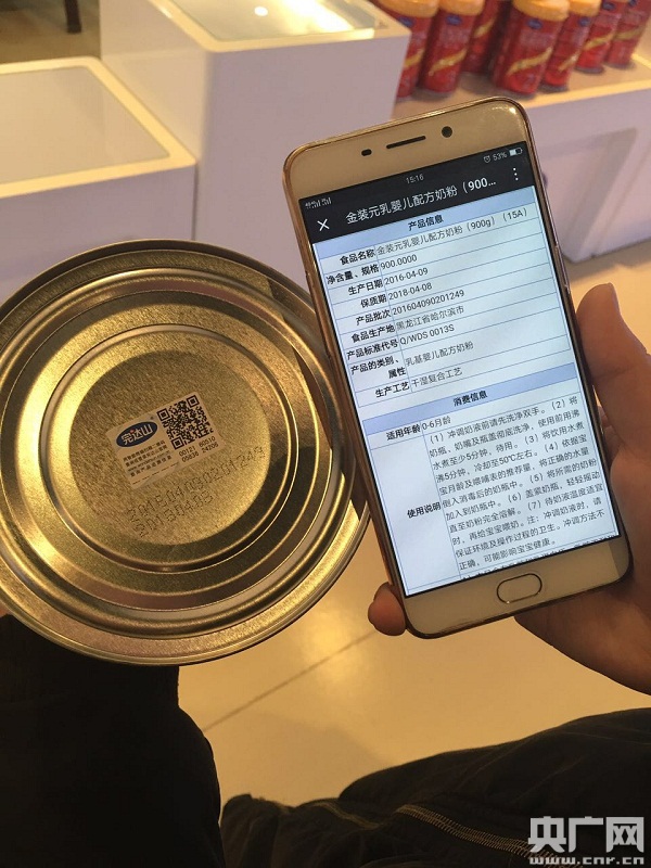 記者通過對一罐完達山奶粉底部的二維碼掃描,即可得出奶粉相關信息。