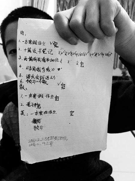 寒假期間,王師傅每天晚上回來都要檢查兒子的寒假作業(yè)完成情況,少不了強(qiáng)調(diào):“你的人生起點(diǎn)要比你的老子高一些,否則我和你媽算是白辛苦了。”王飛鵬悄悄地告訴記者,為了完成假期作業(yè),自己和同學(xué)已經(jīng)想盡了辦法,而最有效和最便捷的策略,就是搞起了完成作業(yè)的“互助組”。