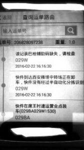 華商報記者從順豐管理系統之一的“查詢運單路由”中看到,物品從西安到廣州都屬于正常,但2月22日16:16記錄顯示,“巴槍輔助碼缺失,請檢查”。2月23日,在“投訴歷史”中記錄,“此件在我辦自動化解包時發現異常,快件外包裝破損,內用氣泡膜包裹一個首飾盒,盒內無物品,已正常上報,請跟進”。