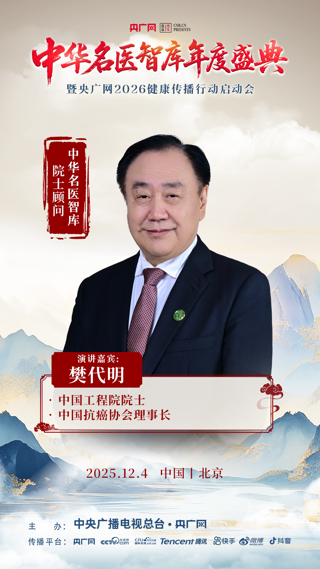 央廣網北京12月1日消息(記者門庭婷)由中央廣播電視總臺央廣網主辦的“中華名醫智庫年度盛典暨央廣網2026健康傳播行動啟動會”將于12月4日正式啟幕。