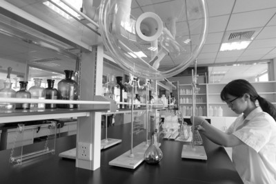工作人員在供水新實(shí)驗(yàn)室里做總堿度檢測(cè)