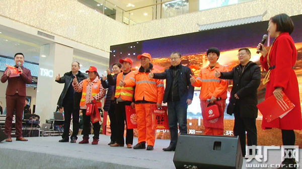 來自合肥軌道交通建設員工、綠化環衛保潔員的共20名先進工作代表還現場贈送健康包和新年福袋。
