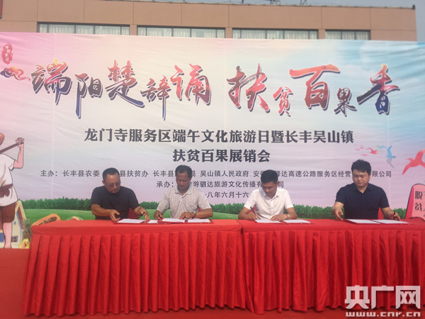 央廣網(wǎng)合肥6月17日消息(記者徐鵬)“端陽楚辭誦,扶貧百果香。”昨天,合肥市長豐縣吳山鎮(zhèn)扶貧百果展銷會暨“楚辭”朗讀者專場活動在安徽驛達(dá)龍門寺服務(wù)區(qū)舉行,近30家農(nóng)企代表和農(nóng)戶代表參展。