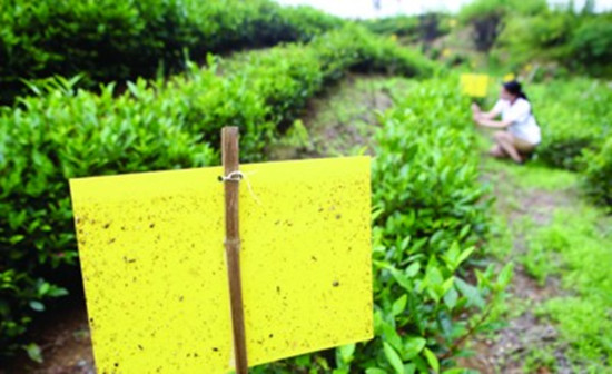 據(jù)安徽商報(bào)訊 “Hi,大家好!我是一張張黃色粘蟲板,在金寨縣燕子河鎮(zhèn)的茶葉園內(nèi),漫山遍野都能見到我,遠(yuǎn)遠(yuǎn)看上去,你會(huì)發(fā)現(xiàn)整個(gè)山上插滿‘小黃旗’,你別看我小,卻有大作用!”7月8日,途經(jīng)的游客們看到了這樣奇怪的景象。這些綠色無(wú)污染的粘蟲板為茶葉樹防控病蟲害,成為村民脫貧致富的好幫手。