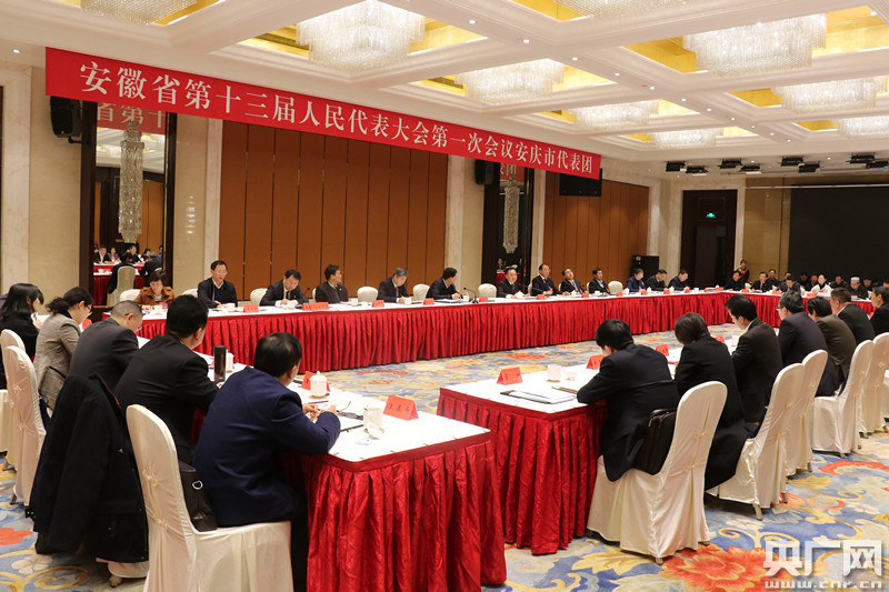 • 央廣網合肥1月23日消息(記者徐鵬)昨日,安徽省十三屆人民代表大會第一次會議在合肥開幕。1月23日,各市代表團舉行分組會議,審議政府工作報告等相關報告。圖為安慶代表團舉行分組會議。