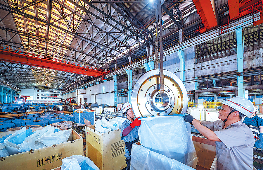 6月4日下午,馬鋼輪軸事業(yè)部職工在對出口法國阿爾斯通公司的36件AT840G高鐵車輪進行包裝發(fā)運。馬鋼加強與“一帶一路”沿線國家和地區(qū)合作,今年1月至5月,已與世界70多個國家和地區(qū)發(fā)展了雙邊貿(mào)易。通訊員 張明偉 攝
