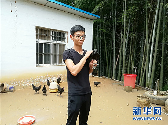 胡本生和他的“五黑雞”。新華網李東標 攝