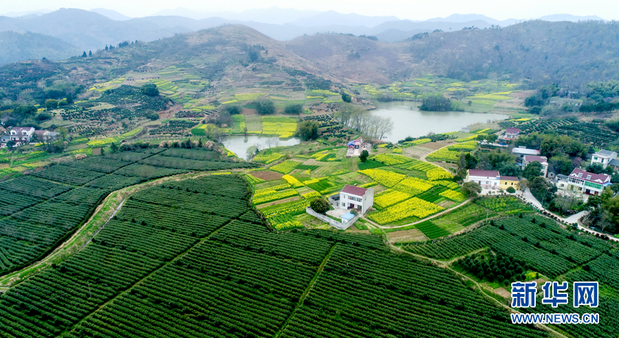 3月22日,航拍廬江縣果園山水庫邊的茶園。