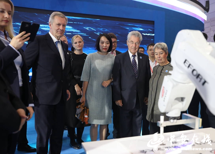 有朋自遠(yuǎn)方來,齊聚精品安徽,點(diǎn)贊皖美制造。9月19日晚,2019世界制造業(yè)大會(huì)開幕在即,外國前政要、聯(lián)合國工發(fā)組織、英國代表團(tuán)在內(nèi)的數(shù)十名外賓來到此次制造業(yè)大會(huì)的主展館參觀。展館內(nèi),高顏值的智能機(jī)器人“佳佳”,復(fù)興號(hào)穿上“國產(chǎn)跑鞋”的馬鋼車輪,會(huì)跳搖擺舞的多用途機(jī)器狗等展品充分展現(xiàn)了安徽“高精尖”的制造實(shí)力,贏得外賓一致點(diǎn)贊。包容開放讓安徽的“朋友圈”越來越大。