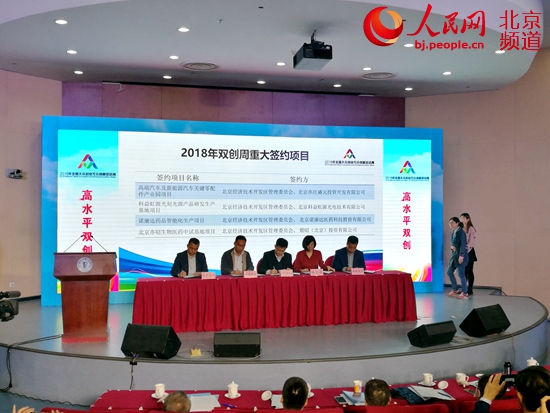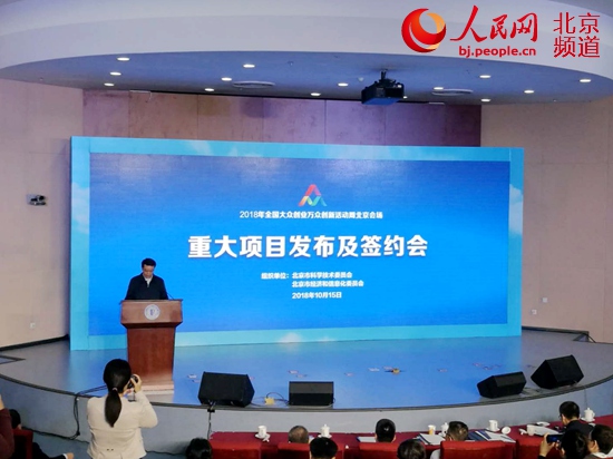 10月15日,2018年全國雙創(chuàng)周北京會場舉行“重大項目發(fā)布及簽約”。人民網(wǎng)孟竹 攝