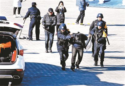上午11時許,北青報記者在現場看到,在朝陽區十八里店附近,無人機發現在一個院落里有數名人員進行非法聚集,經過層層匯報后,反恐小組及時出警處置,控制現場抓獲嫌疑人。此外,現場模擬多個實戰情景進行公開演練。