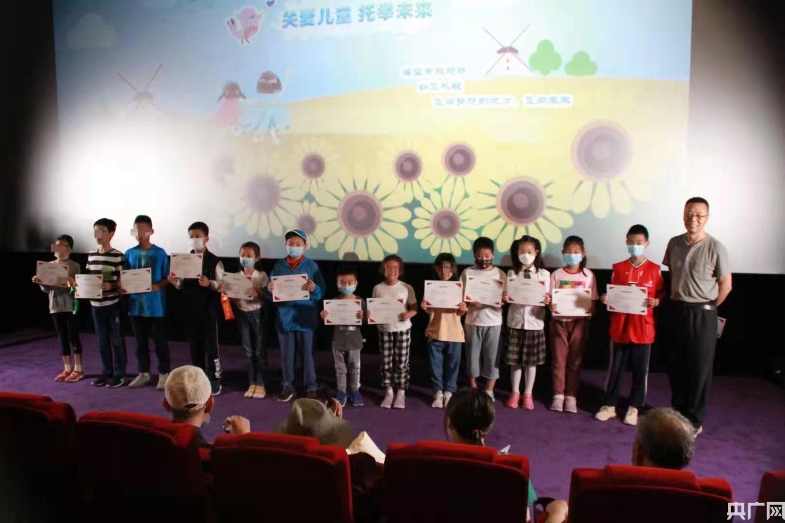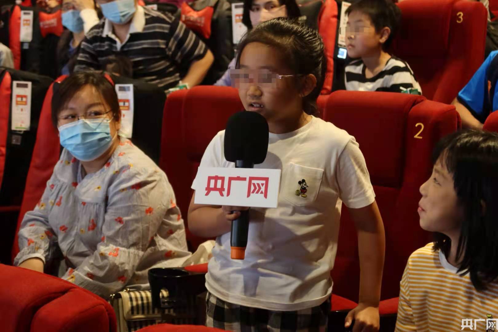 此時家長也帶著孩子們陸續到達影院,孩子們在進場前愉快地交流著。