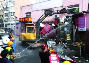 東城城管龍?zhí)秷?zhí)法隊(duì)副隊(duì)長(zhǎng)趙巖說(shuō),這片違建建于上世紀(jì)80年代,距離旁邊的鐵路線只有40米。隨著大型機(jī)器的鐵臂下去,酥脆的墻面迅速倒下,露出房頂內(nèi)部破舊的電線。“有的房子房頂就是塑料泡沫板建成的,加上私拉電線,具有非常大的安全隱患。”