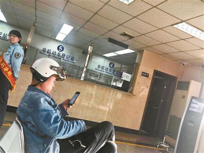 一位電動自行車車主在等待辦理手續攝影/屈暢