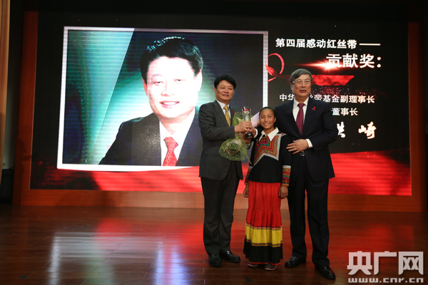 活動(dòng)上還頒發(fā)了第四屆“感動(dòng)紅絲帶”獎(jiǎng)。中國民生銀行董事長洪崎榮獲“感動(dòng)紅絲帶---貢獻(xiàn)獎(jiǎng)”,他領(lǐng)導(dǎo)的中國民生銀行全體干部職工積極參與防艾工作,著力解決受艾滋病影響貧困落后地區(qū)的教育、醫(yī)療衛(wèi)生困難,2015年9月,其捐建的涼山州美姑縣民生銀行紅絲帶愛心學(xué)校正式竣工,首批接納了當(dāng)?shù)?00名特殊困難兒童入學(xué);沙瑪阿果榮獲“感動(dòng)紅絲帶---愛心獎(jiǎng)”,自2010年加入紅絲帶事業(yè)以來,她便為推動(dòng)大涼山防艾事業(yè)四處奔走,發(fā)揮自身影響力為紅絲帶工作宣傳、籌款,牽頭打造追蹤艾滋病母嬰阻斷過程的紀(jì)錄片,感動(dòng)了眾多社會(huì)愛心人士;湖北省隨州市電力公司“紅絲帶黨員服務(wù)隊(duì)”榮獲“感動(dòng)紅絲帶---溫暖獎(jiǎng)”,在2001年國人對艾滋病“談艾色變”的時(shí)候,均川鎮(zhèn)供電所的17名共產(chǎn)黨員毅然決定留守艾滋病疫情最重的鄉(xiāng)村,為他們進(jìn)行電網(wǎng)改造,幫助他們克服困難,如今紅絲帶黨員服務(wù)隊(duì)的規(guī)模已經(jīng)擴(kuò)大到800人,他們十四年如一日的幫助受艾滋病影響家庭,提高他們的生產(chǎn)生活水平,資助感染者家庭培養(yǎng)出了4名大學(xué)生,幫助20多名艾滋孤兒完成了初中、高中等學(xué)業(yè),資助了100多個(gè)艾滋病家庭50余萬元;彩虹中國創(chuàng)始人張錦雄榮獲“感動(dòng)紅絲帶---自強(qiáng)獎(jiǎng)”,他在20歲時(shí)候發(fā)現(xiàn)感染了艾滋病,迄今為止已與艾共生20年,他自信、樂觀,主動(dòng)公開自己的感染身份,并從1997年開始在艾滋病防治機(jī)構(gòu)做義工,2008創(chuàng)辦獨(dú)立的公益組織,迄今在全國40多個(gè)地區(qū)的60多所高校舉辦一百多場公益講座。