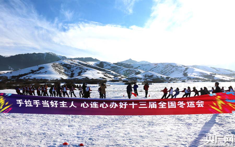 水西溝鎮(zhèn)在雪地里舉行拔河比賽(黃光輝攝) 央廣網(wǎng)北京12月13日消息(記者黃光輝)全國(guó)第13屆冬季運(yùn)動(dòng)會(huì)將在新疆舉行,十三冬點(diǎn)燃了新疆冬天里的一把火,新疆各地掀起冰雪運(yùn)動(dòng)熱潮。 中央媒體采訪團(tuán)近日走進(jìn)新疆冰上運(yùn)動(dòng)中心、絲綢之路國(guó)際滑雪場(chǎng)和天山天池國(guó)際滑雪場(chǎng),深入阿勒泰市將軍山滑雪場(chǎng),感受到新疆各族人民對(duì)冰雪運(yùn)動(dòng)的熱愛(ài)。記者在人類滑雪發(fā)源地阿勒泰市將軍山滑雪場(chǎng)采訪中看到:阿勒泰市高山滑雪隊(duì)的運(yùn)動(dòng)員們正在備戰(zhàn)第十三屆全國(guó)冬運(yùn)會(huì),幾十名身穿紫紅色滑雪服的中學(xué)生在教練的帶領(lǐng)下在初級(jí)道上學(xué)習(xí)滑雪,一個(gè)只有五六歲小孩也在雪場(chǎng)躍躍欲試,還有一位從海南慕名而來(lái)滑雪愛(ài)好者在這里體驗(yàn)冰雪運(yùn)動(dòng)的樂(lè)趣,毛皮滑雪表演隊(duì)的小伙子們身穿哈薩克傳統(tǒng)民族服裝、腳踏馬皮滑雪板在雪山上穿梭。 -