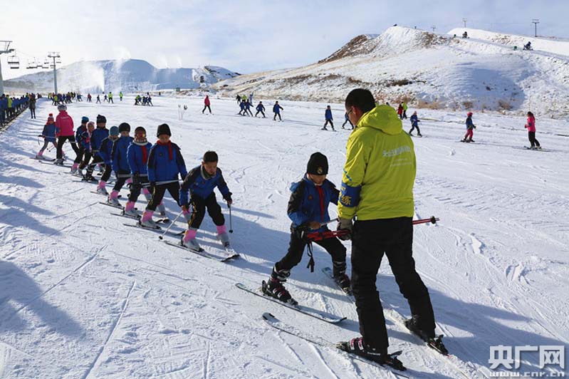 天山天池國(guó)際滑雪場(chǎng)孩子們?cè)趯W(xué)習(xí)滑雪(黃光輝攝) 在阜康市的天山天池國(guó)際滑雪場(chǎng),近百名身穿滑雪服的孩子們?cè)诮叹毜膸ьI(lǐng)下,在茫茫雪場(chǎng)中一步步向前滑行。成為滑雪場(chǎng)一道亮麗的風(fēng)景線。天山天池國(guó)際滑雪場(chǎng)將承接‘十三冬’的六個(gè)雪上賽事。天山天池國(guó)際滑雪場(chǎng)董事長(zhǎng)李新萍:“每到冬季,很多家長(zhǎng)都領(lǐng)著孩子到滑雪場(chǎng)滑雪,滑雪運(yùn)動(dòng)已經(jīng)成為了新疆人日常生活的一部分。國(guó)家非常重視全民健身運(yùn)動(dòng),也會(huì)有越來(lái)越多的市民投入到冰雪運(yùn)動(dòng)中。” -