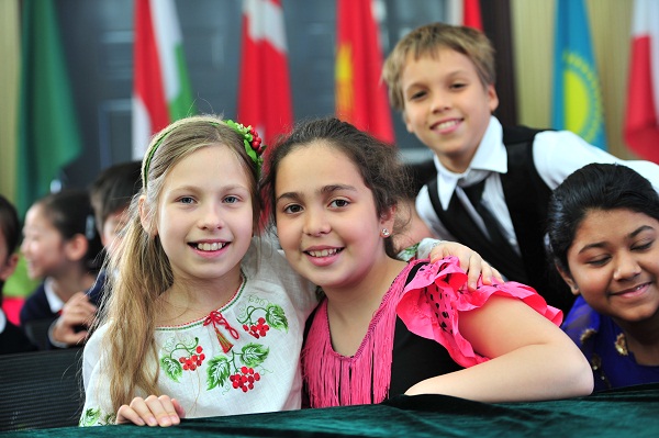 習(xí)近平總書記在2013年六一節(jié)到來之際,曾到北京少年宮看望同學(xué)們,并與在那里參加活動的芳草地的同學(xué)合影,儀式上芳草地中國部的“融之聲”合唱團唱起了《習(xí)爺爺是咱們的大朋友》,再次憶起那幸福的時光。芳草地國際部不同國籍的5名學(xué)生表演了詩朗誦《和平的色彩》,贏得一陣陣熱烈的掌聲。
