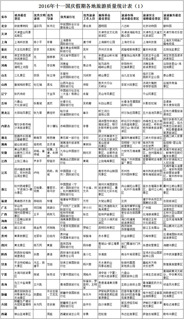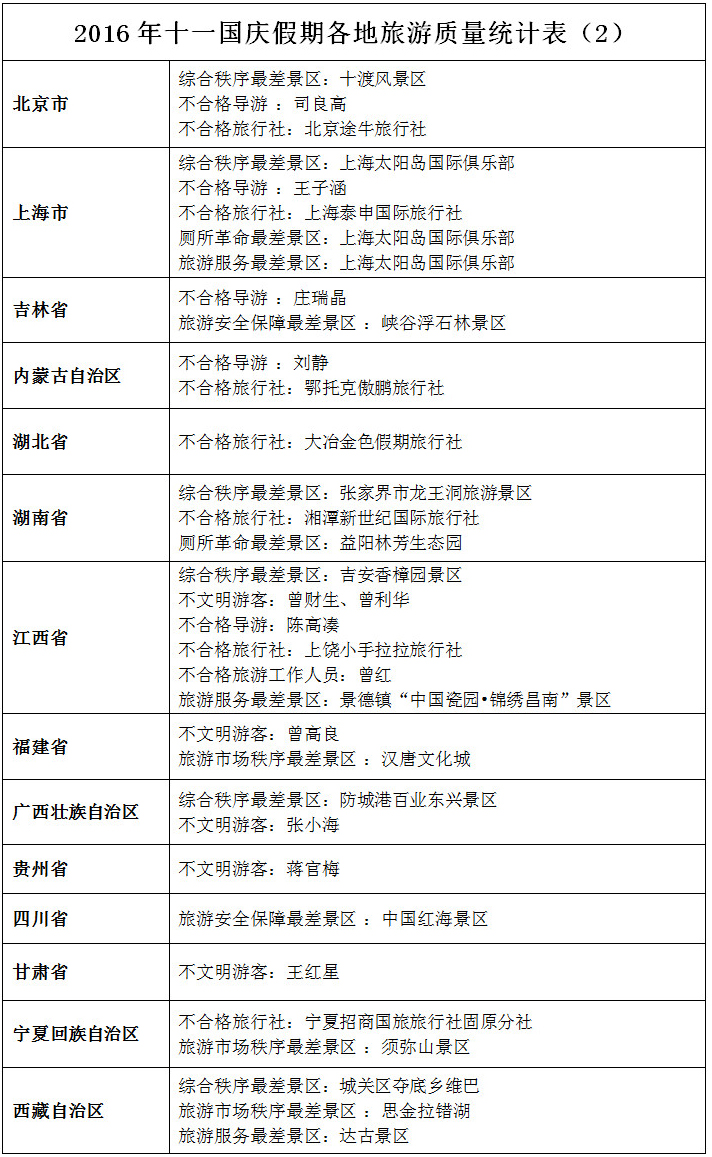 10月9日,國家旅游局發布十一假日旅游“紅黑榜”。(圖片來源:國家旅游局)