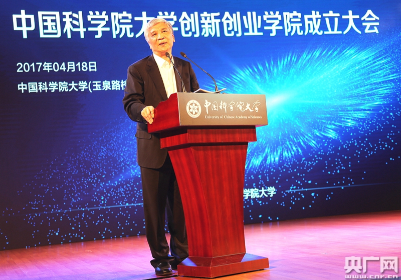 教育部高教司司長張大良在致辭上說,創新創業人才培養是高等教育的重要使命,創新創業學院是高校開展創新創業教育的重要載體,今天中國科學院大學成立創新創業學院,是進一步深化學校創新創業教育改革的重要舉措,體現了中國科學院和中國科學院大學對大學生創新創業教育的高度重視和有力支持。他提出,進行創新創業教育,一是要堅持育人為本,完善培養體系;二是要堅持改革創新,探索辦學新路;三是要堅持系統推進,形成工作合力。他希望,通過共同努力,進一步深化創新創業教育改革,打造“大眾創業、萬眾創新”的生力軍,為建設創新型國家提供堅實的人才支撐和智力支持。